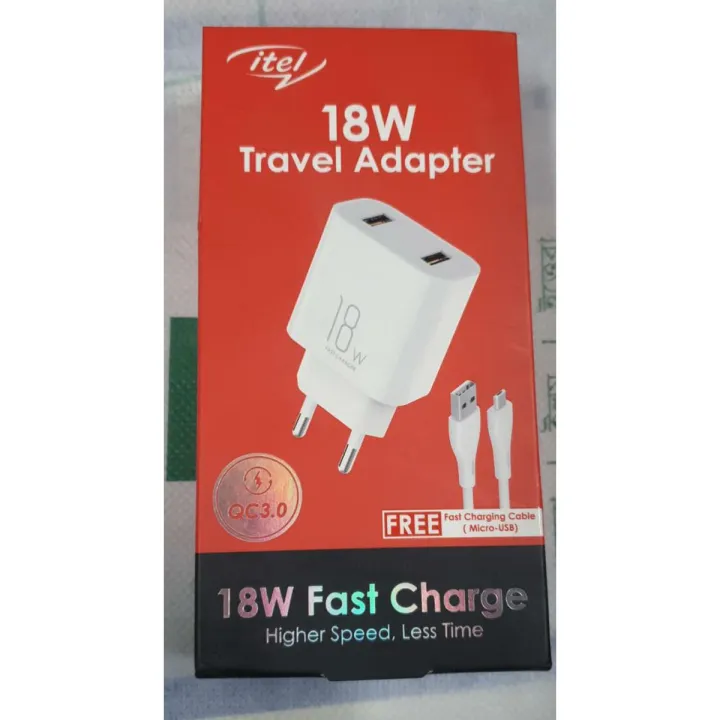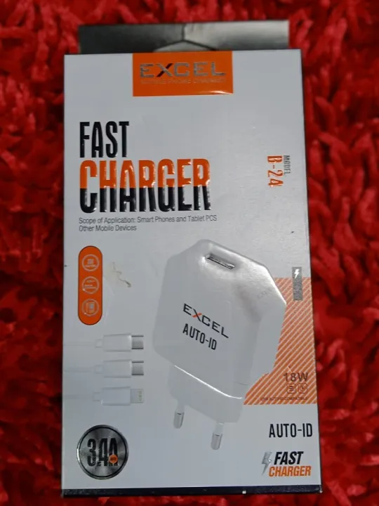 18W Auto-ID Fast Charger designed for smartphones, tablets, and other mobile devices. Equipped with smart Auto-ID technology for optimal charging speed and safety. Includes a durable Micro USB cable for reliable, efficient power delivery anytime, anywhere.