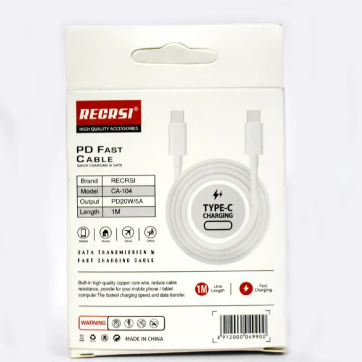 Recrsi PD Fast Cable CA-104 Type-C – দ্রুত চার্জিংয়ের নির্ভরযোগ্য সমাধান