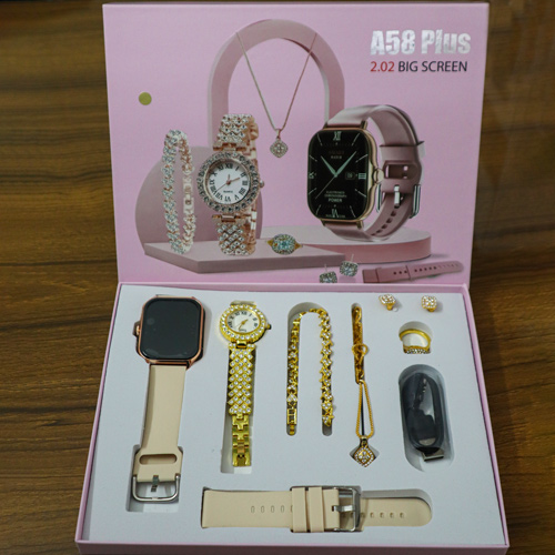 স্টাইল, স্মার্টনেস আর সৌন্দর্যের অনন্য সমন্বয়—সবই আছে A58 Smart Watch & Jewellery Combo-তে!